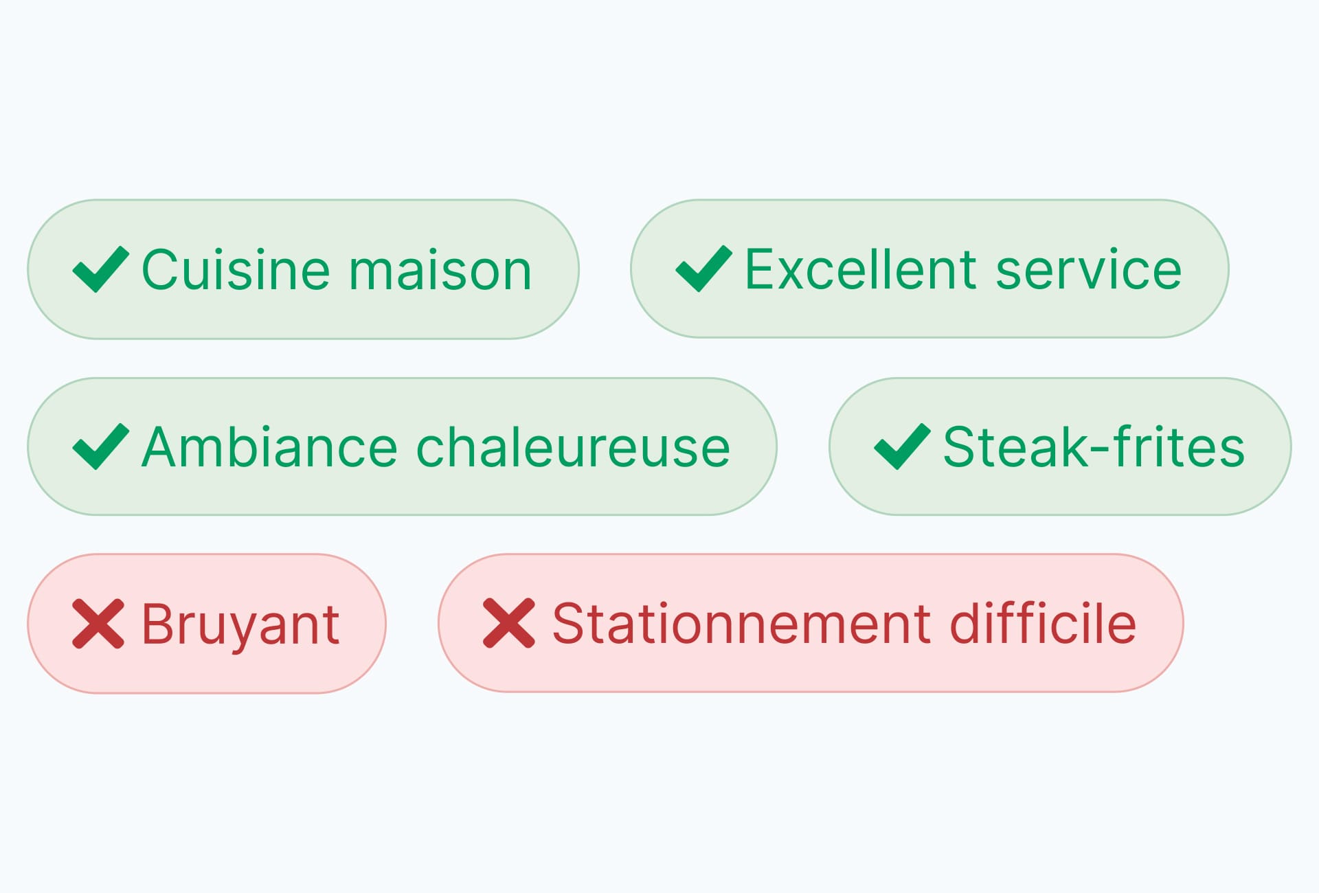 L'IA d'OPINAS analyse les avis pour identifier ce que vos clients apprécient le plus et où vous pouvez vous améliorer.