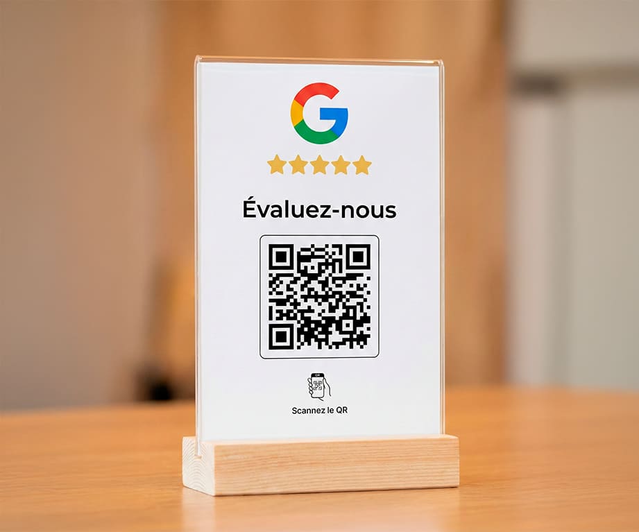 Si vous voulez commencer à recevoir plus d'avis sur Google et améliorer la réputation de votre établissement, cette affiche est la solution idéale. En quelques minutes, vous aurez une affiche professionnelle avec votre QR personnalisé prête à imprimer.