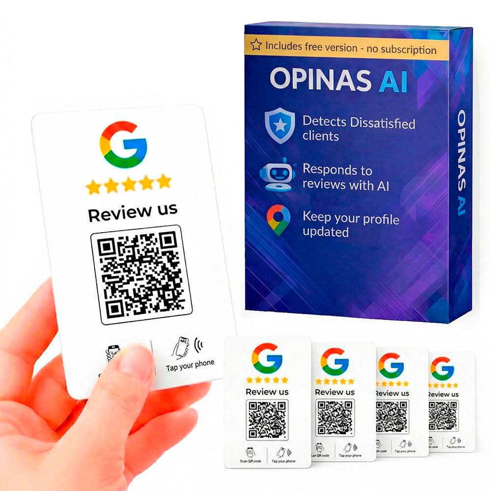 NFC cards connected to OPINAS allow you to activate a private contact form to offer dissatisfied customers an alternative to rate you in private without having to publish a review on Google.