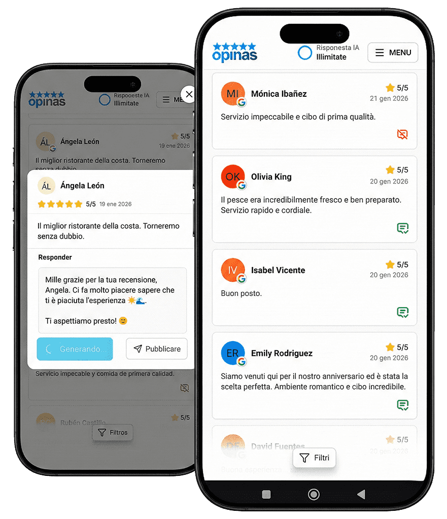 L'AI di OPINAS analizza le recensioni per identificare ciò che i tuoi clienti apprezzano di più e dove puoi migliorare.